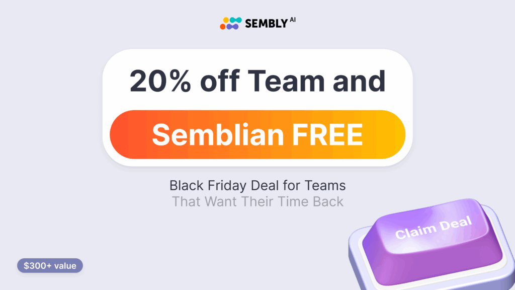 This Black Friday deal is designed for professional teams who refuse to waste another hour and want to scale fast. Does it sound like you? If your workflows depend on meetings or collaboration, Sembly can provide clarity and structure where you need it most.
